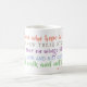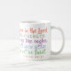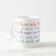 Weiße Christliche Tasse mit farbenfrohen Texten. Die Schrift stammt aus dem Buch Jesaja und lautet: "Aber wer auf den Herrn hofft, wird seine Kraft erneuern. Sie werden wie Adler auf den Flügeln steigen: Sie werden laufen und nicht ermüden, sie werden laufen und nicht ohnmächtig sein." Jede Zeile hat eine andere Farbe. Wählen Sie eine beliebige Größe und Tasse.