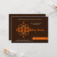 Eine schöne und sehr einzigartige islamische Aqiqah Einladungskarte mit verziertem Damast-Druck in Form eines Schlüssels, die Farben sind braun, orange und weiß, arabisch - asiatisch. Islamisches Sprichwort Basmallah: Im Namen Allahs, Gnade, barmherzig.