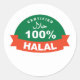 Islamisches Zertifikat Halal Aufkleber. Dieser Aufkleber ist ein Zertifizierungszeichen, das angibt, dass das Produkt auf Halal angebracht ist, was bedeutet, dass es den islamischen Ernährungsvorschriften entspricht. Das Wort "Halal" ist in Arabisch und Englisch geschrieben. Dieser Aufkleber kann auf Lebensmittelverpackungen, Behältnissen und Etiketten verwendet werden, um anzuzeigen, dass das Produkt für den Verzehr durch Muslime zulässig ist.
