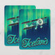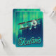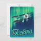 Island Vintages Reiseplakat der Nordlichter und ein Leichtflugzeug, das vorbei fliegt.