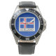Herrenuhr aus Edelstahl mit schwarzem Lederarmband