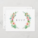 Botanischer Kranz mit üppiger Vegetation und Blume in hübschen Farbtönen von grün, koral, pfirsichfarben und rosa, Hochzeitsrsvp mit Gesang Anfrage Postcard. Personalisieren Sie Texte, passen Sie den Stil, die Farbe und die Größe der Schriftart an.