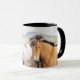 Island brünieren, weiß und schwarze Pferde in der Weide bewirtschaften