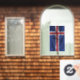 Fensterheber mit der Fahne von mit der Flagge von Island in gewelltem Stoffdesign. Dieses Design zeichnet sich durch die isländischen Fahnen-Farben und das Design mit einem wunderschönen Wellenstoff texturierten Effekt aus. Dieses Flaggendesign ist eine großartige Möglichkeit, Ihnen zu zeigen, dass Sie stolz sind, aus Island zu kommen.
