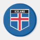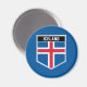 Die Nationalflagge Islands ist in eine Schildform eingearbeitet, in der der Ländername über der Flagge hinzugefügt wird. Der Hintergrund ist dieselbe Farbe wie das Blau in der Flagge.