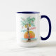 Die Weihnachtsfeiertage im tropischen Strandthema sind mit einer Sonnenstrahlen-Tasse mit einer Palme, die mit Lichtern und Ziergegenständen dekoriert ist, und einem "fröhlichen Urlaub"-Gruß ausgestattet. Die untere Textzeile kann mit einem eigenen Namen oder Gruß personalisiert werden. Kunst von KL Stock
