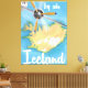 Island Vintage Reiseplakat. Island Cartoon-Flugplakat drucken.