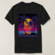 A lone squirrel rests on a tiny palm island, framed by a glowing sun, neon grid water and starry vaporwave sky for a dreamy tropical evening look.