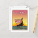 Island Viking Travel Poster, mit einem langen Schiff auf dem Ozean während des Sonnenuntergangs.
