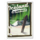 Island Zu Snowboard Vintage Art Reiseplakat eines Snowboards unter den Nordlichtern in der Eiswelt.