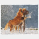 Zwei isländische Pferde, ein Fohlen und seine Mama, die in einer schneebedeckten Landschaft Schneeball spielen, niedlichen Ponys, fotografiert von Katho Menden. Diese weiche und gemütliche Fleecedecke ist eine Geschenkidee für Pferde.