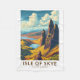 Isle of Skye Retro Vektor-Reise-Design. Die Insel Skye, die mit der schottischen Nordwestküste durch eine Brücke verbunden ist, ist bekannt für ihre wilden Landschaften, malerischen Fischerdörfern und mittelalterlichen Burgen.