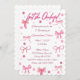 Isn't she Onderful First Birthday for a baby girl invitation with cute pink bows and sparkle.