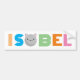 Der Name Isobel mit dem Buchstaben O als Katzenkopf. Jede einzelne Farbe des Textes kann geändert werden, ebenso wie der Kopf der Katzen. Drücken Sie nach Auswahl des Kopfes auf "Nach Original umkehren", um in eine Ingwerkatze zu wechseln.