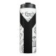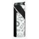 Isothermische Flasche mit Zeichnung von Komponenten, Teilen und Zubehör für Fahrradfahrer. ( Lunette/ Helm / Schlösser/ Zähler / Tretschuhe / Gewehre / Schlüssel/ Werkzeuge / Multitools / Sattel / Gabel / Ritze / Handschuhe / Lichter / Kette / Pedal / Gurke )