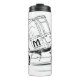 Isotherme Flasche mit einem Rucksack, der ein Auto überrollt. Meny Bikes Logo.