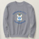 Das personalisierte, langärmelige Männerpullover ist mit einem Engel versehen, der die Flagge Israels für Hanukkah trägt. Blauer Text für Name, Jahr und Urlaub. Liebliches Hanukkah Geschenk für ihn.