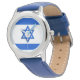 Kinderuhr aus Edelstahl mit blauem Lederarmband