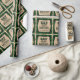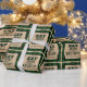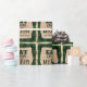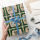Dieses Geschenkpapier bietet ein festliches Weihnachtsthema. Im Hintergrund befindet sich ein rustikales, grünes Buffalo-kariertes Muster, das mit Schneeflocken bestreut ist. In der Mitte ist ein Vintages Pergament-Papier-Poster gedruckt und gerahmt mit einem Rahmen im Stil einer Goldfolie. Die Phrase "Trink essen und sich wohl fühlen" wird oben in einem dunkelgrünen Schriftart gedruckt, gefolgt von einem BeispielFamiliennamen. Sie können das Packpapier so gestalten, dass es Ihren eigenen individuelle Name oder einen anderen Text enthält.