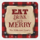 Iss Drink und sei froh rustikal rot Karierte Weihn Quadratischer Aufkleber