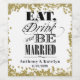 Essen Sie Drink und Verheiratete Typografie Custom Wedding Wein Flaschen Labels (Set von 6) gerahmt durch Glitzer Goldgrenze. Scratch-resistente und wasserdichte entfernbare Probe Dinner Verlobung Neu vermählte Brauerei Geschenk Personalisiert. Um den Text zu ändern, verwenden Sie die Option Personalisieren. Für umfangreichere Textänderungen, wie z. B. das Hinzufügen von Text, Änderungen am Schriftart, Schriftart, Textgröße und Layout, wählen Sie die Option Anpassen.