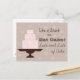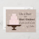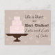 "Das Leben ist kurz, also essen Sie Kuchen, viel und viel Kuchen" - Niedlicher gestufter Kuchen auf Kuchenstand. Braunes und rosa Muster auf der Postkarte.
