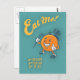 Retro-Vintage Zitrusfrüchte mit einer fröhlichen Orange in einem Top-Hut und, iss me! für Gesundheit, für Geschmack, für Spaß! Text.