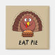 Ein niedlicher Truthahn, der Sie zum Kuchen zum Erntedank einlädt.