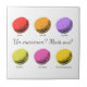 Fröhliches und farbenfrohes Bild französischer Makronen mit französischem Text. Eine angenehme Ergänzung zu jeder Dekoration!