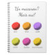 Fröhliches und farbenfrohes Bild französischer Makronen mit französischem Text. Ein reizender Hüter Ihrer Notizen!