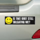 Sag es mit einem Lächeln! Dieser lustige und sarkastische Autoaufkleber hat ein gelbes Gesicht auf einem schwarzen Hintergrund und lautet: "Passt mir dieser Idiot noch immer?" Perfekt und unterhaltsam für jeden, der sich der Idioten Schneider auf der Straße überdrüssig ist.