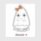 Ist das Süßigkeiten? Halloween niedliches Geistermädchen auf einem Sonderschnitt-Aufkleber.