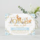 Adorable Waldland zum 1. Geburtstag Einladung in Blau und Gold mit niedlichen Waldtieren - Hirsche, Brötchen, Eichhörnchen und Vögel