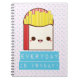 Ist Fryday täglich! Fantastisch! Kawaii Pommes-Frites über einem blauen und weißen Tupfenhintergrund.