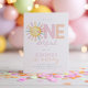 Ist sie nicht wunderbar! Eine süße, sonnengestaltete Einladung zum 1. Geburtstag eines Mädchens in pastellblau, lila und pfirsich. In anderen Farben erhältlich.