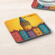 A vibrant city skyline featuring colorful buildings and a historic tower inspried by the city of Istanbul, Turkiye against a warm sunset background.