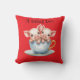 Cute "It takes Two" Teacup Piglets Design Cushion featuring, two cute piglets in a teacup set on a plain red background.
