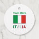 Runde Gefallen Tag zeigt die Flagge von Italien, oder in Italienisch, Bandiera Italiana. Unten, das Wort ITALIA, in den roten, weißen und grünen Streifen des il Tricolore. Oben, ein Ort für Ihren Namen, in grünen Buchstaben. Erstellen Sie eine personalisierte Touch für Ihr Party oder Ereignis. Spaß für Wiedersehen, Reisegruppen und Vereine Italiens.
