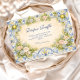 An elegant Italian-inspired baby shower design featuring a decorative lemon and floral border with ornate Mediterranean tile details. Soft blues, warm ivory tones, and hand-painted botanical elements create a refined European garden aesthetic reminiscent of classic Italian villas. Perfect for lemon, Amalfi Coast, or old-world Mediterranean themed celebrations with a timeless, romantic feel.