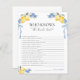Bring laughter to your celebration with this Italian bridal shower game, featuring yellow lemons, blue bows, and soft watercolor accents. This Who Knows the Bride Best game is perfect for a That’s Amore theme, Mediterranean brunch, or summer lemon shower. A fun, interactive way to celebrate the bride while matching your Blue Bow Lemons collection — bright, playful, and full of Italian charm.