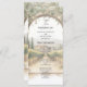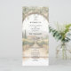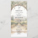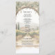 This tall, refined program features a watercolor vineyard landscape framed by a graceful stone arch and cascading greenery. The clean, classic typography keeps each ceremony moment easy to follow while maintaining a luxurious, destination-wedding aesthetic.