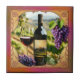 Tile featuring a classic design with a bottle of wine and Italian landscape scenes and grapes.