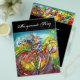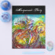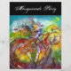 Farbenfrohe, skurrile, musikalische abstrakte figurative Aquarellmalerei mit Tanzfiguren, Musikern, lebhaften Karnevalskostümen, gefiederten Masken in leuchtgrün goldgelb, rot, rosa, fuchsia, blau, lila Farben, inspiriert von Comedy of Art (Commedia dell'arte ), Venezianische Masken und Karneval von Venedig. Für Weihnachten, Feiertage, besondere Anlass, Hochzeiten, Jubiläum, Geburtstagspartys ,Mardi Gras ( Fett Dienstag ) Saison,Neujahr auch Maskenball,Valentinstag.