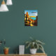 Das helle und farbenfrohe, altmodische Poster wird Ihre Wand zieren und den Raum aufheitern. Geschehen in den Farben Gold und Orange mit einem bisschen Blau.