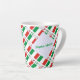 Personalisierte latte Tasse zeigt die italienische Flagge mit dem Wort ITALIEN unten in den Flaggenfarben. Design ist gekachelt für eine künstlerische Ästhetik. Das weiße quadratische Fraktal bietet einen Platz für Ihren Namen, in grünen Buchstaben, für ein personalisiertes Aussehen. Wenn Sie ein individuelles Geschenk erstellen möchten, fügen Sie stattdessen den Namen eines anderen hinzu. Spaß in Wiedersehen, Reisegruppen und Clubs
