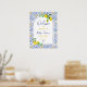 Unsere inspirierte, blau-blaue Keramik-Kachel-Muster in italienisch-mediterraner Farbe, gepaart mit freundlich handgemalten gelb-grünen Aquarelllemonen, schafft ein frisches und modernes Begrüßungszeichen für die Babydusche, das bestimmt beeindruckt! Mit einer modernen Bogenform und einem eleganten Pinselskript. Beeindrucken Sie Ihre Gäste mit diesem angesagten und einzigartigen Design, das jeden zum Reden bringt.