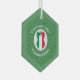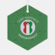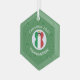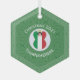 Hexagon-Glasschmuck für die Weihnachtsdekoration mit einem Engel, der die grüne, weiße und rote Fahne Italiens trägt. Der Engel der italienischen Weihnachtsfahne fliegt in einem Kreis von weißen quadratischen Quadraten. Der Hintergrund ist grün quadratisch. Fügen Sie Ihren eigenen Text oder personalisieren Sie mit einem Namen und passen Sie mit dem Jahr.