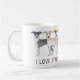 Desteis originelle Cartoon-Illustration eines niedlichen Greyhound-Hundes in verschiedenen Fellfarben. Die Farben Blau und Weiß, Creme, Fawn und Weiß, Schwarz und Weiß und die Fingernähe. Unter dem Bild befindet sich ein personalisierbarer Textbereich, der nun lautet: "I Liebe Italian Greyhounds".
