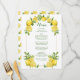 Hochzeitsmenü mit Zitronen und Grünpflanzen. Ideal für eine Sommerhochzeit im Frühjahr. Die Wörter können geändert werden, um Ihre eigenen Angaben oder Anforderungen Anzug