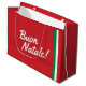 Eine Weihnachtsgeschenktasche mit italienischem Weihnachtswunsch und italienischer Fahne. Es steht "Buon Natale!" und wünscht frohe Weihnachten.